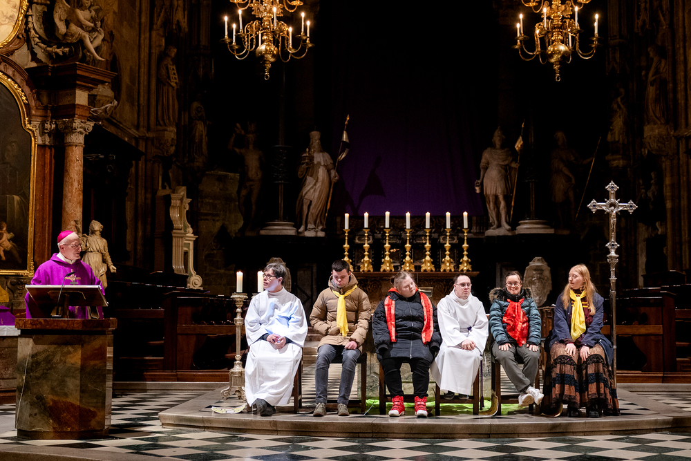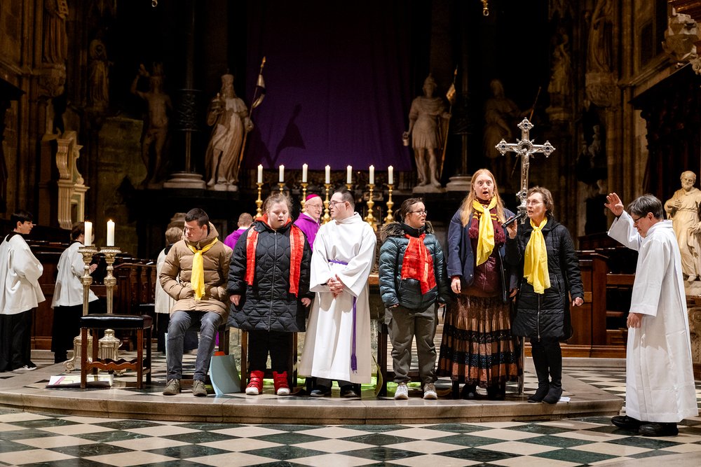 Rund um den "Welt-Down-Syndrom-Tag" am 21. März findet im Wiener Stephansdom ein besonderer Gottesdienst statt. Die Messe wird von Menschen mit Down-Syndrom und deren Familien gestaltet. Die musikalische Gestaltung übernehmen die Gruppen Faith4U&Me und Veeh-Harfen Saitensalat. Wir waren mit der Kamera dabei.